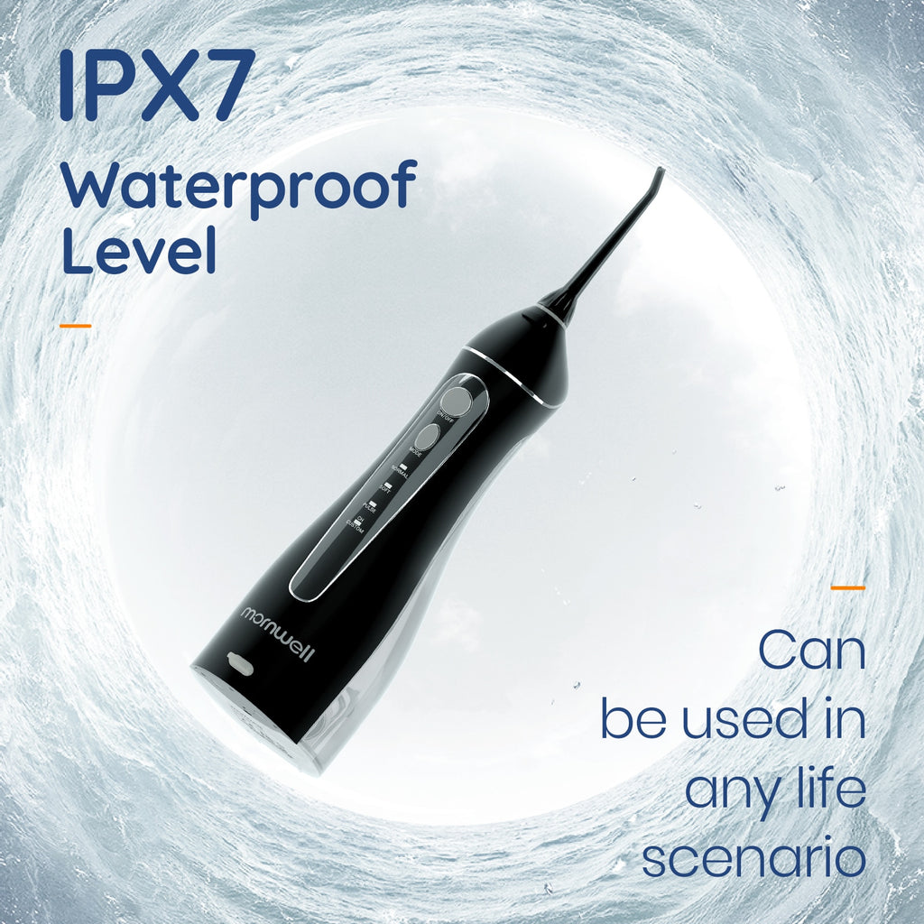 5.Features: Multifunctional / IPX7 Waterproof / 3 Adjustable Work Modes / Strong Water Pressure / Convenient Portable USB Charging / Detachable Large Capacity 200ml Water Tank / 5 x Different Function Nozzles,1 x Cleaning Brush / 360° Rotating Nozzles / Unique Gravity Ball Design / Waterproof Plug & Dustproof Plug Design